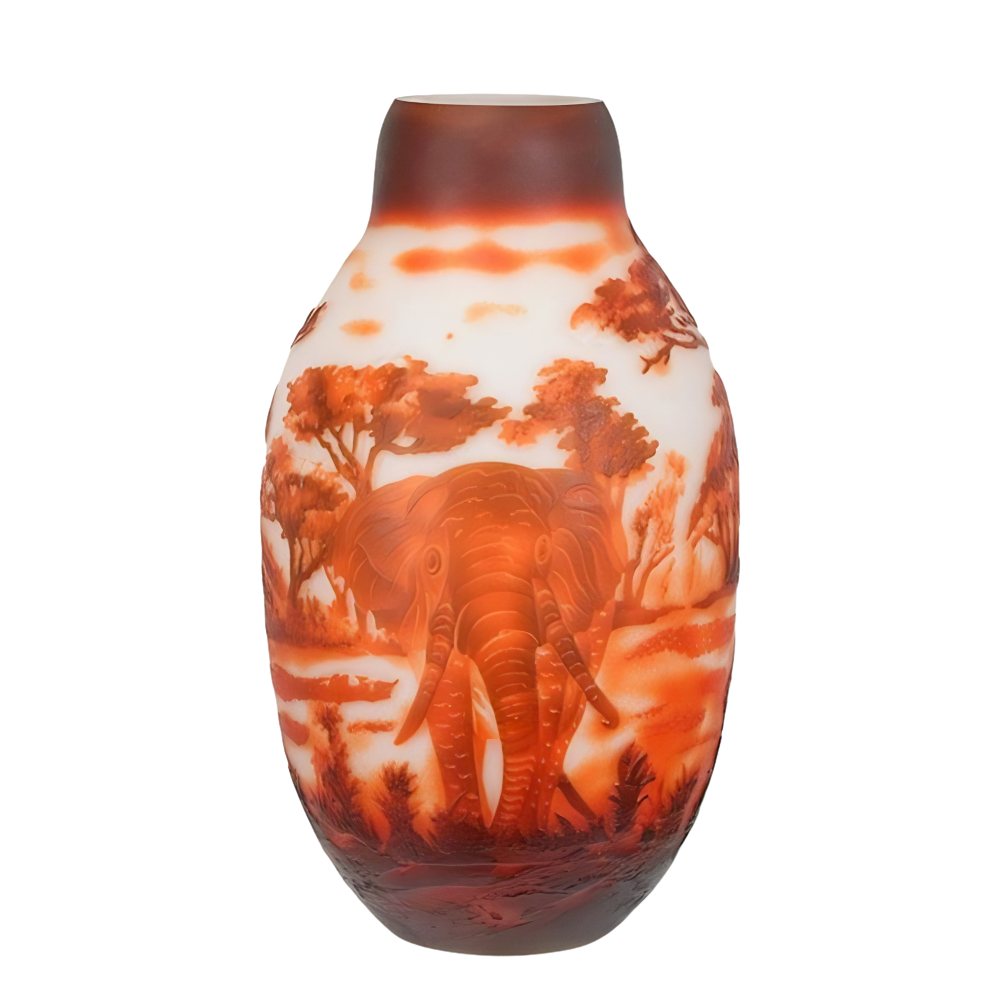 🐘🐘 Cameo Glazen Balustervaas Afrikaanse Olifant – Exclusief Kunstwerk van Ambachtelijk Glas