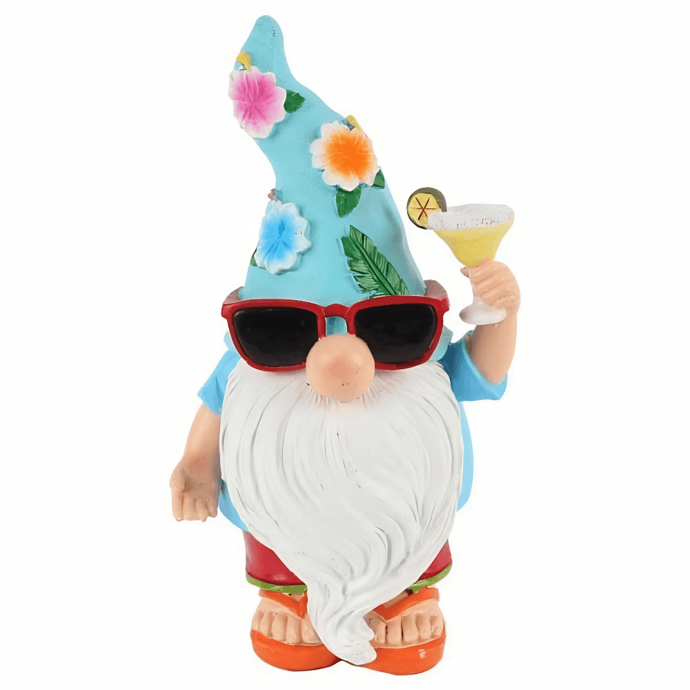 Grappig Beeldje van een Zomerse Kabouter met een Cocktail in de hand.