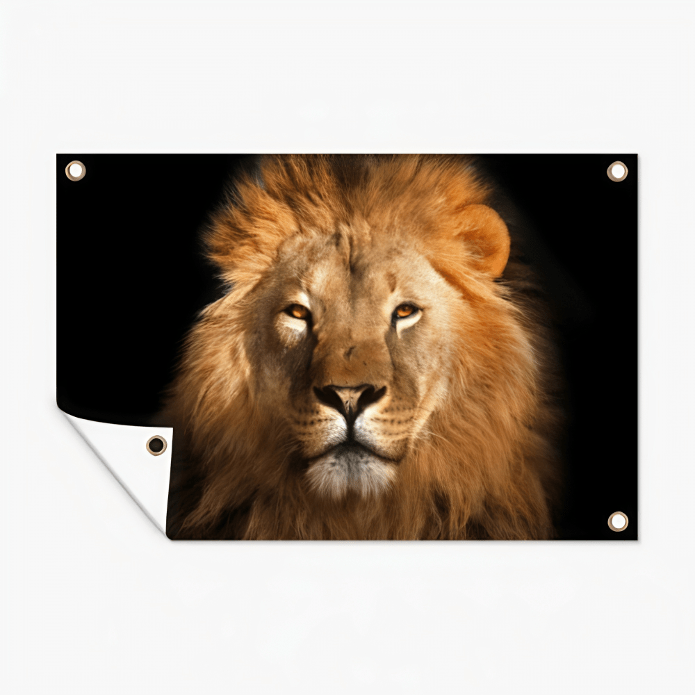 Tuinposter mannetjes Leeuw op een zwarte achtergrond.